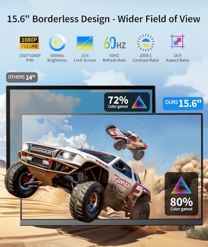 Aumenta tu productividad en un 200 %: el extensor de monitor dual para laptop ofrece múltiples modos de visualización, incluyendo modos extendido, espejo y vertical, abordando eficazmente los desafíos del espacio limitado de pantalla y el cambio constante de ventana; con capacidades multitarea perfectas, puede mejorar tu productividad hasta en un 200%; equipado con una pantalla IPS FHD de 1080P, brillo de 300 nits, 1: 10000 contraste/85 Cobertura de gama de colores NTSC, que ofrece colores vivos y imágenes nítidas; la función de brillo ajustable del monitor portátil protege tu vista incluso durante un uso prolongado, por lo que es ideal para crear una estación de trabajo eficiente y que ahorra espacio