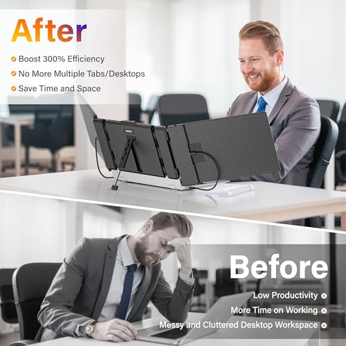 Triple pantalla: el monitor portátil CIDETTY para laptop está equipado con dos puertos USB tipo C y un puerto HDMI a USB-C. Se puede conectar fácilmente y proporciona experiencias de espejo y pantalla extendida. Puede ampliar el espacio de la pantalla hasta dos veces, lo que facilita la multitarea con múltiples modos de visualización. Le permite crear una estación de trabajo móvil personal en cualquier momento y en cualquier lugar, y puede aumentar la eficiencia del trabajo hasta en un 200%.
