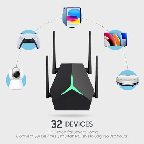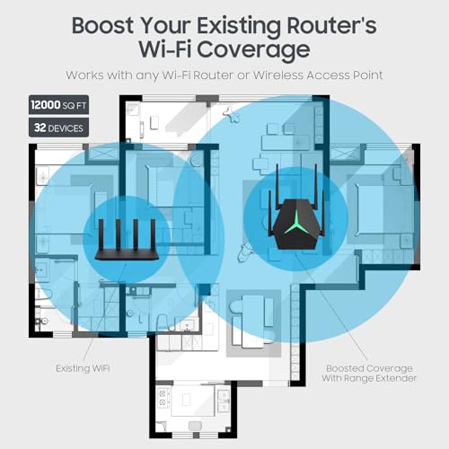 Extensores WiFi Amplificador de señal para el hogar, AC1200 de doble banda 5.8 GHz y 2.4 GHz, amplificador WiFi de largo alcance y amplificador de señal cubre hasta 12000 pies cuadrados, repetidor