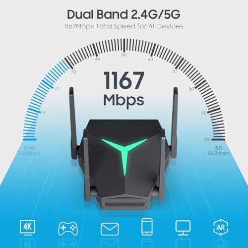 4 potentes antenas y velocidades de 1167 Mbps: equipado con 4 antenas externas de alto rendimiento y tecnología avanzada de doble banda (2.4 GHz y 5.8 GHz), este amplificador de señal WiFi ofrece velocidades de Internet ultrarrápidas de hasta 1167 Mbps. Garantiza una transmisión 4K fluida, juegos en línea sin retrasos y videollamadas estables en todo tu espacio.