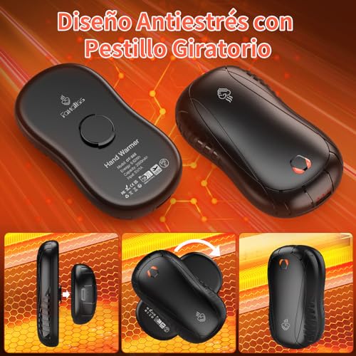 Especificaciones: FANDLISS Pack de 2 Calentador de Manos Recargable 10000 mAh, Calentador Manos Calentamiento de Doble Cara 3 Niveles de Calor, para Camping, Golf, Regalos Idea Tech para Hombres, Mujeres