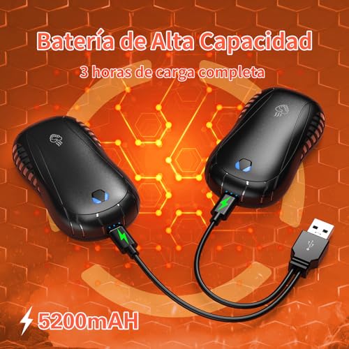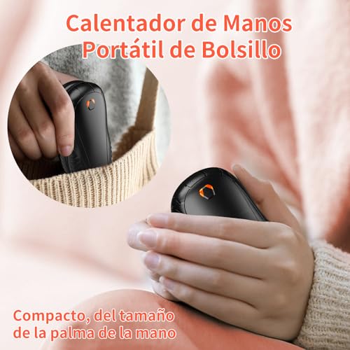 Carga Rápida y Larga Duración: Calienta manos equipado con batería recargable 3.6V 5200mAH. 1 velocidad para 12-13 horas, 2 velocidades para 8.5-9.5 horas y 3 velocidades para 6-7horas. Puerto de carga Tipo-C, completamente cargado en 3 horas.Mantenga pulsado durante 3 segundos para encender y apagar automáticamente.