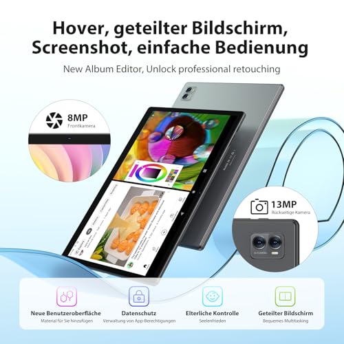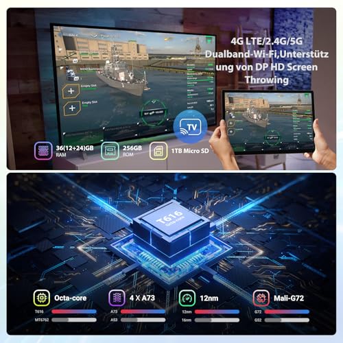 WiFi 5G (SIM no compatible)+RAM masiva + cámara dual. Chip WiFi de doble banda integrado en tableta de 2,4 G + 5 G con velocidad de red más estable y buena señal a través de la pared, con hasta 36 GB (12 GB+24 GB) de memoria, 256 GB de ROM integrada y soporte para tarjeta microSD de 1 TB, el dispositivo puede ser fácilmente grande Aplicaciones y multitarea y ofrece al usuario una excelente experiencia multitarea. Diseño de cámara dual con cámaras macro de 8 MP+13MP+2MP,editor de álbum nuevo integrado y funciones de retoque profesional.