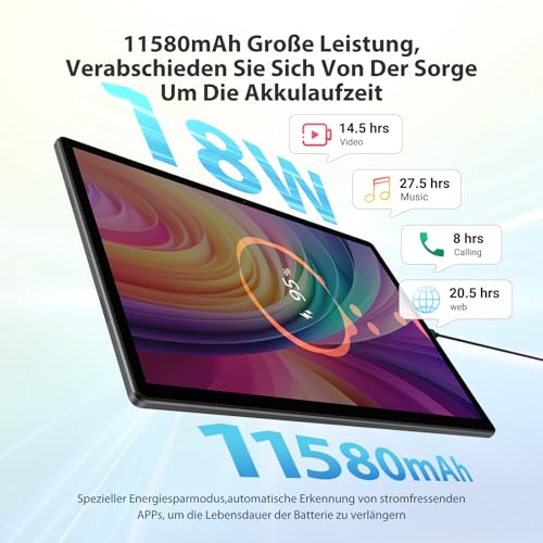 Batería grande de 11580 mAh de larga duración+9 V/2 A 18 W. La tableta de 14 pulgadas viene con una batería de 11580 mAh y carga súper rápida de 18 W, que puede soportar hasta 480 minutos de reproducción de vídeo durante largos períodos sin necesidad de cargar frecuentemente. La carga es más fácil con el conector tipo C, independientemente de la polaridad positiva o negativa. Con AI Smart Power. Modo de gestión y ahorro de energía, puede detectar y filtrar automáticamente las aplicaciones que consumen energía en segundo plano para mantener la tableta en un estado saludable y prolongar la vida útil de la batería.