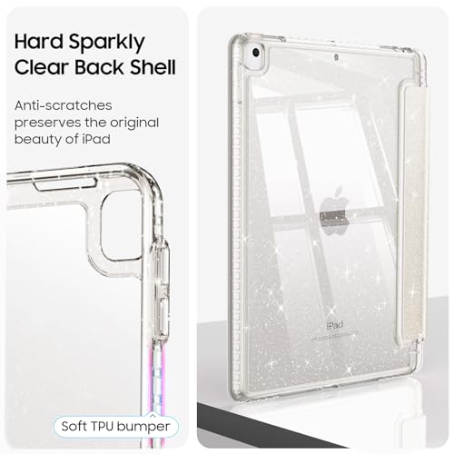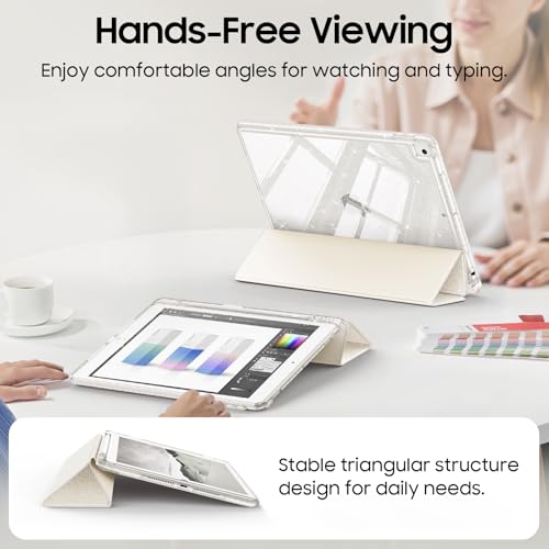 Fintie Funda delgada para iPad de 9ª / 8ª / 7ª generación (2021/2020/2019) de 10.2 pulgadas – [Soporte para lápiz integrado] Funda brillante a prueba de golpes con carcasa trasera transparente