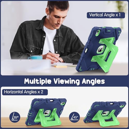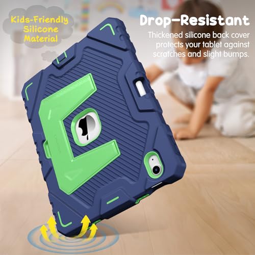 Fintie Funda protectora para niños para iPad (A16) de 11ª generación de 11 pulgadas (2025), iPad de 10.9 pulgadas (2022), funda protectora resistente a prueba de golpes con soporte, (azul marino/verde