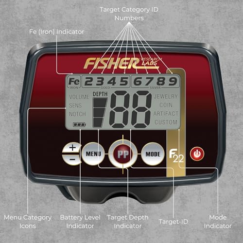 El F22 es un detector de metales totalmente resistente a la intemperie y fácil de usar. Cuenta con una velocidad de reanimación superrápida con una excelente separación de objetivos y una discriminación fácil de usar, sensibilidad, muescas y funciones de punto. El audio de hierro ajustable de Fe-Tone te permite ajustar el volumen de los objetivos ferrosos más bajos que el volumen de los objetivos no ferrosos para una mayor claridad en los objetivos deseados. Identifique objetivos fácilmente enterrados con las categorías de objetivos de 9 segmentos y una identificación numérica de objetivo de 0 a 99 con sistema de identificación de audio de 4 tonos. Especialmente diseñado para permitir a los usuarios establecer sus propios tonos. ¡Y ya lo moja! El F22 puede afrontar casi cualquier entorno.