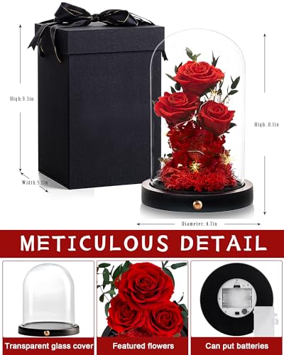 Flores para el día de San Valentín, rosas de regalo para mujeres y ella, rosa preservada para siempre en cúpula de cristal, aniversario de San Valentín, cumpleaños, rosas reales regalos para esposa, mujer, novia, mejor amiga/rojo