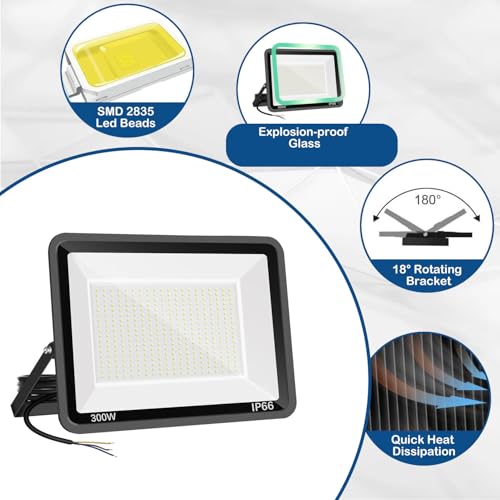 Especificaciones: Focos LED Exterior 300W, IP66 Impermeable Foco Proyector LED, Blanco Cálido 3000K 30000 Lumen Floodlight para Casa, Garaje, Patio, Terraza, Campo