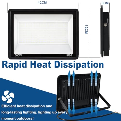 【Iluminación de alto brillo】El foco exterior de 300W tiene un lúmenes brillante de hasta 30000LM, el color de la luz es luz Luz blanca cálida 3000K y el ángulo del haz es de 120°, lo que puede proporcionarle un ángulo de irradiación grande y brillante y una iluminación eficaz.