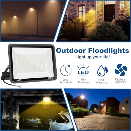 Focos LED Exterior 300W, IP66 Impermeable Foco Proyector LED, Blanco Cálido 3000K 30000 Lumen Floodlight para Casa, Garaje, Patio, Terraza, Campo