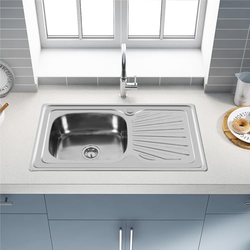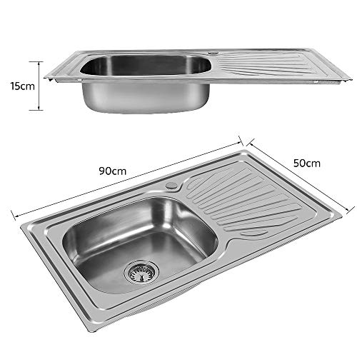 Especificaciones: Fregadero Bajo Encimera- Acero Inoxidable 304,Fregadero sobre Encimera ou Empotrado Fregadero Cocina Un Seno Acero Inoxidable con Desbordamiento y Sifon de Cocina,90 * 50 * 15cm