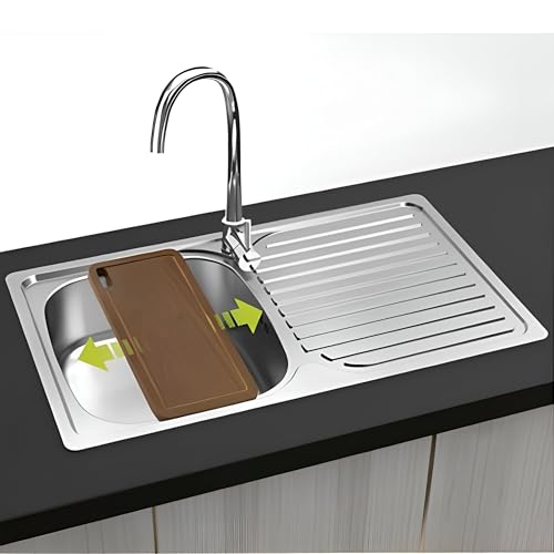 Fregadero Cocina Viena Encastrar 80×44 | 1 Seno y 1 Escurridera | Acero Inoxidable Aisi 304 |… (Con Tabla de Corte, Agujero Escurridera Izquierda)
