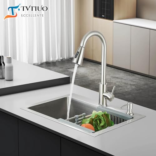 Fregadero multifuncional: Combina las funciones de grifo y dispensador de jabón en uno. El grifo extraíble de la cocina puede cambiar entre dos modos de flujo de agua, lo que hace que un fregadero de cocina sea adecuado para múltiples usos. Permite preparar y limpiar fácilmente los alimentos y los utensilios sin ocupar demasiado espacio, lo que mejora la eficiencia.