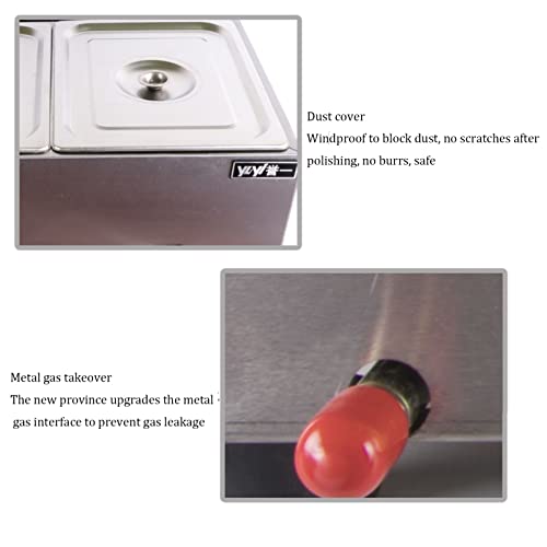 3. Material duradero: la freidora a gas está hecha de acero inoxidable grueso, que es duradero y no se oxida fácilmente. La cesta para freír desmontable se puede utilizar en el lavavajillas, lo que es fácil de limpiar y cómodo. La cubierta de acero inoxidable, fácil de usar, evita que se derrame aceite caliente.