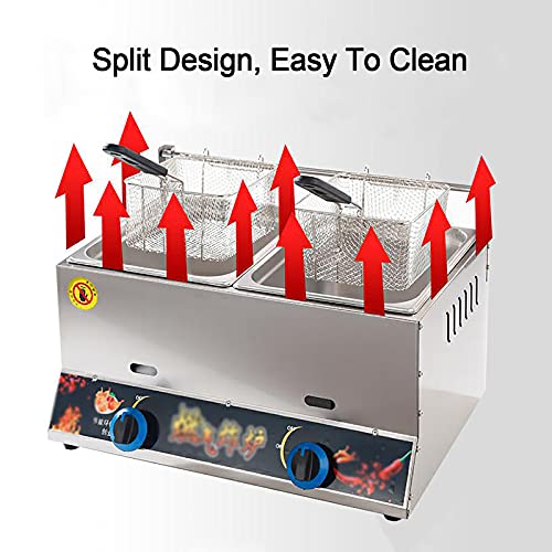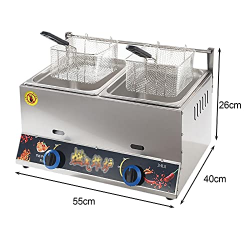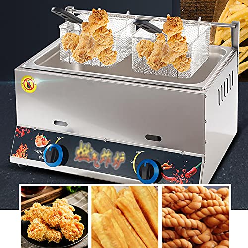 Especificaciones: Freidora de gas GLP con encimera de acero inoxidable, freidora de gas con encimera comercial, para patatas fritas, restaurante, cocina casera