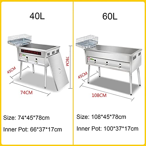 Freidora de gas para encimera comercial de 40L/60L, freidora de GLP, freidora independiente, cocina al aire libre de acero inoxidable, para papas fritas, restaurante, cocina casera
