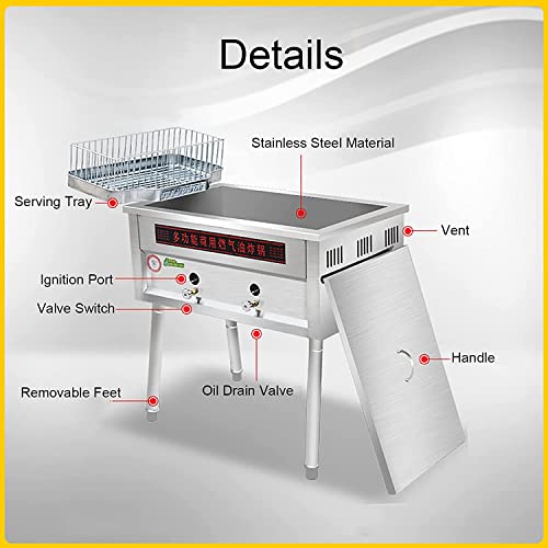 Especificaciones: Freidora de gas para encimera comercial de 40L/60L, freidora de GLP, freidora independiente, cocina al aire libre de acero inoxidable, para papas fritas, restaurante, cocina casera