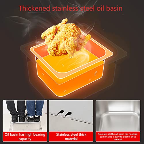 *El contenedor de aceite extraíble facilita la limpieza y facilita el filtrado y almacenamiento del aceite sobrante de quemaduras *Los controles de temperatura variables le permiten para cocinar tus alimentos a la perfección freír* *La freidora sumergible con tubo calentador extendido se calienta más rápido* *Luces indicadoras para monitorear los procesos de trabajo* *Esta freidora eléctrica es perfecta para uso comercial, p. B. para filetes, etc. El paquete contiene 1 freidora y 2 cestas para freidora