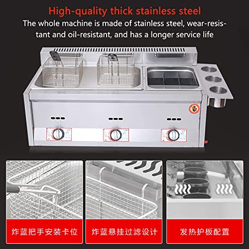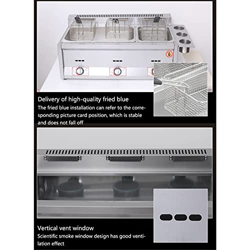 Especificaciones: Freidora de Gas Profesional, Tanque de freidora de Gas de 24 L/36 L, freidora de Patatas Fritas de Pollo de Acero Inoxidable con Cuchara para Cesta para Cocina de Restaurante Comercial