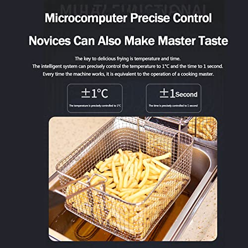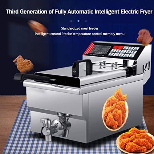 Freidora eléctrica profunda con cesta de acero inoxidable, freidora de aceite de un solo tanque con cesta extraíble y elemento calefactor, ajuste de temperatura, cocina, comida rápida, restaurante, 17