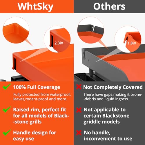 Nuestra filosofía de diseño: La queja común para los maestros de la parrilla es cómo proteger perfectamente sus parrillas cuando no están en uso. Nacida de la necesidad de proteger las planchas Blackstone del óxido y las inclemencias del tiempo, nuestra filosofía de diseño se centra en una protección confiable. Priorizamos la durabilidad y la simplicidad, asegurando que tu parrilla se mantenga impecable temporada tras temporada, extendiendo eficazmente su vida útil