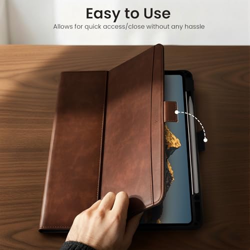 Durabilidad y protección completa: esta funda está hecha a mano con cuero vegano de primera calidad, muy suave al tacto, resistente a arañazos y huellas dactilares. Carcasa interior de TPU suave y flexible que hace que sea fácil de instalar y quitar, y protege tu iPad contra caídas y golpes