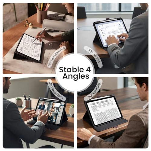 Estables 4 ángulos de pie: La carcasa proporciona 3 ángulos de visión y 1 ángulo de escritura, la facilidad de ajustar el soporte a varios ángulos ha mejorado significativamente la experiencia de visión/escritura/dibujo y comodidad. La microfibra antideslizante especial y las ranuras profundas hacen que cada posición sea muy estable