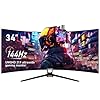 Gawfolk Monitor de computadora para juegos de 34 pulgadas ultra ancho curvado 144Hz 1500R, pantalla de PC 21:9 UWQHD (3440 x 1440), sincronización adaptativa, ángulo de visión de 178°, puerto de