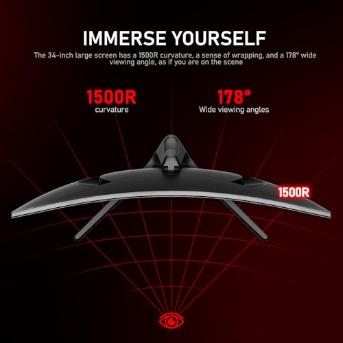 Gawfolk Monitor de computadora para juegos de 34 pulgadas ultra ancho curvado 180Hz, pantalla de PC 1500R 21:9 UWQHD (3440 x 1440), 120% sRGB, sincronización adaptativa, ángulo de visión de 178°