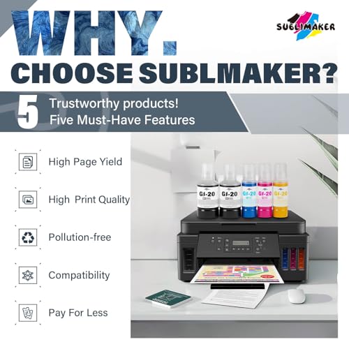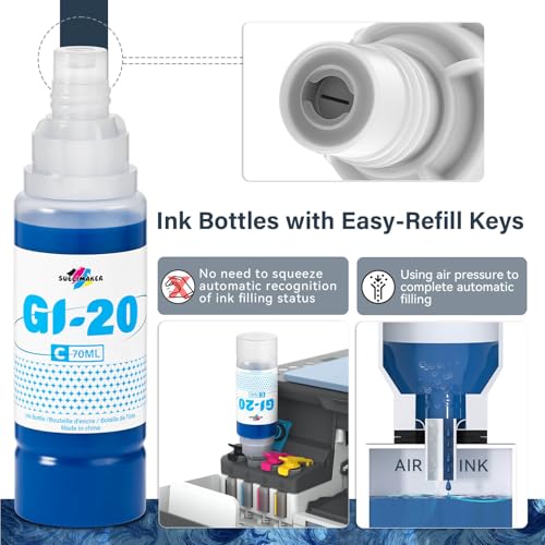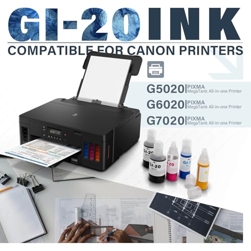 GI-20 GI20 Kit de botellas de repuesto de tinta compatible con impresoras Canon PIXMA G6020 G7020 G5020 6020 7020 5020 MegaTank, compatible con botellas de repuesto de tinta Canon GI-20, paquete de 5 (negro 4.7 fl oz, color 2.4 fl oz)
