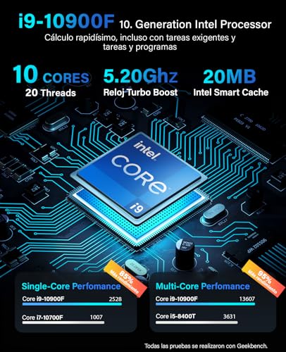 Especificaciones: Greed® PC Ultra V2 Intel Core I9 10900F – Ordenador de sobremesa + Home Office a 5,2 GHz – 32 GB RAM/Memoria – 1 TB SSD + 1 TB HDD – DVD+RW – USB3.1 – Wi-Fi, con Win11 Pro