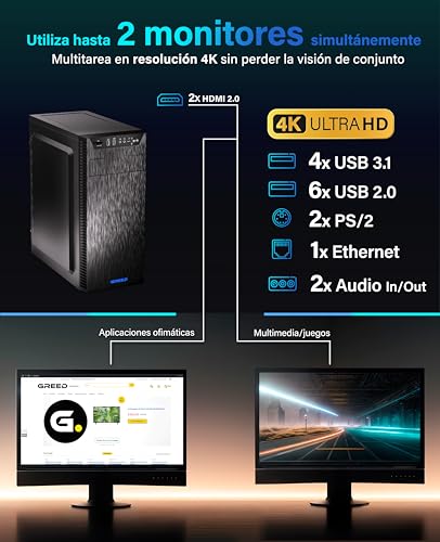 Greed® PC Ultra V2 Intel Core I9 10900F – Ordenador de sobremesa + Home Office a 5,2 GHz – 32 GB RAM/Memoria – 1 TB SSD + 1 TB HDD – DVD+RW – USB3.1 – Wi-Fi, con Win11 Pro