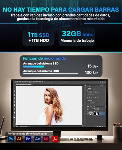 Perfecto para el uso diario. Nuestro soporte para PC está equipado con el sistema operativo Windows 11 Pro / WIN 11 Professional de 64 bits y el paquete Office. ¡Con nuestro disco duro integrado de 1 TB + 1000 GB HDD tendrás espacio suficiente para tus fotos, vídeos u otros datos personales!