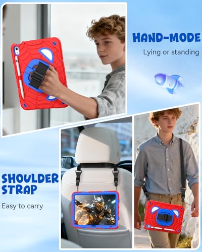 Correa de transporte extraíble y ajustable: la correa de hombro portátil te permite llevar fácilmente tu iPad 11/10 mientras estudias, trabajas o viajas al aire libre. Además de llevar la correa sobre el hombro, también puedes fijarla a otros lugares, como la parte posterior de un asiento de automóvil, para proporcionar opciones de visualización más convenientes para el iPad