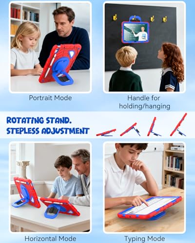 Correa de mano giratoria y soporte de apoyo: el soporte giratorio de 360° admite ajuste multiángulo para una cómoda visualización, lectura y escritura; el soporte mantiene la estabilidad en varias superficies. Con correa de mango funcional, más fácil de usar tu tableta en casa o al aire libre, trabajar, estudiar, jugar