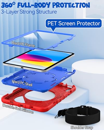 Especificaciones: Grifobes Funda infantil para iPad A16 de 11ª/10ª generación 2025/2022 de 11/10.9 pulgadas, protección de cuerpo completo con soporte para lápices, protector de pantalla, soporte, correa de mano y