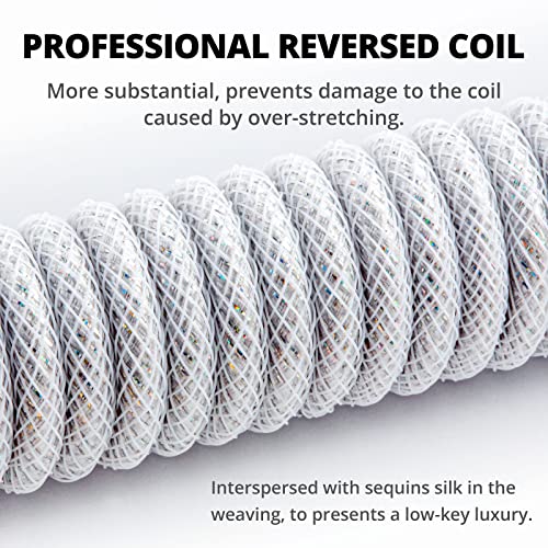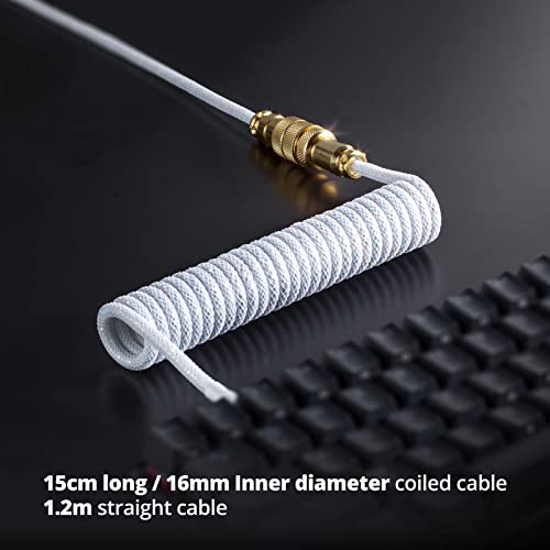 GUNMJO Starlight – Cable de teclado USB C en espiral para teclado de juegos, cable de teclado mecánico de doble manga con aviador de metal desmontable, USB-C de 1.5M a USB-A, color blanco con conector aviador dorado