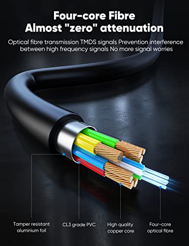 Highwings Cable HDMI 8K 4K 120HZ de 40 pies de fibra óptica, en pared CL3 largo HDMI 48Gbps de alta velocidad [8K @60Hz] HDR/eARC/HDCP 2.2 y 2.3/3D, compatible con GPU de escritorio Serie 30 y 40