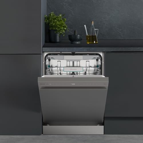 Hisense HS673A90X – Lavavajillas clase A, 16 servicios, tercera bandeja, 7 programas, ancho 60 cm, Conectividad Wi Fi, secado automático, iluminación interior LED, Inox