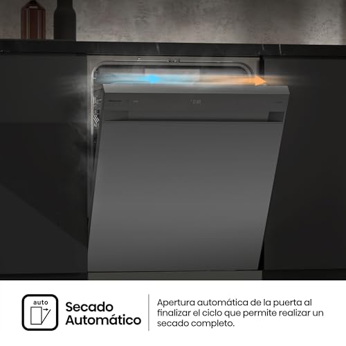 Especificaciones: Hisense HS673A90X – Lavavajillas clase A, 16 servicios, tercera bandeja, 7 programas, ancho 60 cm, Conectividad Wi Fi, secado automático, iluminación interior LED, Inox