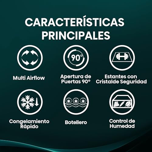 Especificaciones: Hisense MC60331IE – Frigorífico combi No Frost, 200cm alto, 60cm ancho, clase E, capacidad 336 litros, botellero, apertura puerta reversible 90º, Multi Airflow, fondo reducido 58cm, silencioso 39dB