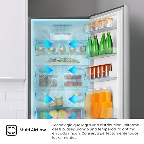 Hisense MC60331IE – Frigorífico combi No Frost, 200cm alto, 60cm ancho, clase E, capacidad 336 litros, botellero, apertura puerta reversible 90º, Multi Airflow, fondo reducido 58cm, silencioso 39dB