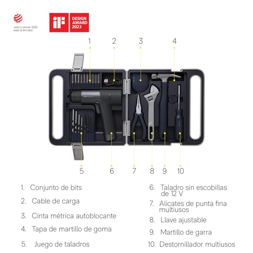 Especificaciones: HOTO Caja de Herramientas Completa 24 Piezas, Maletín Herramientas con Taladro 12V, Destornilladores, Cinta Métrica, Martillo, Llave de Carraca, Kit para Bricolaje, Mantenimiento y Reparaciones