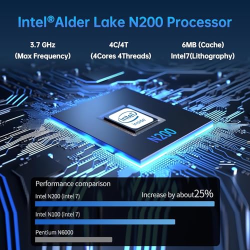 Procesador Intel de cuatro núcleos N200: procesador Intel N200 (Base 1.0 GHz, hasta 3.70 GHz con tecnología Intel Turbo Spice up, 6 MB Intel Sensible Cache, 4 núcleos, 4 hilos). L. a. combinación perfecta de rendimiento, consumo de energía y valor ayuda a que su dispositivo funcione sin problemas y confiablemente. Navegue y descargue fácilmente con cuatro núcleos de procesamiento para satisfacer sus necesidades multitarea.