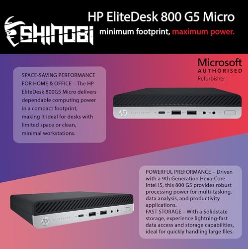 Como un restaurador autorizado por Microsoft, Shinobi PC renueva profesionalmente cada sistema a través de rigurosas pruebas y certificaciones. El EliteDesk 800 G5 Micro es una solución inteligente y sostenible para usuarios que buscan un rendimiento confiable en un paquete compacto.