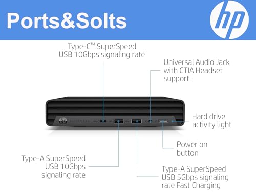 Memoria y capacidad de almacenamiento: HP EliteDesk 800 G6 Mini PC de escritorio configurado con 16 GB de RAM para multitarea sin problemas y un SSD de 256 GB para una respuesta acelerada del sistema, este mini escritorio garantiza tiempos de arranque rápidos y acceso instantáneo a los datos. La unidad de estado sólido proporciona un almacenamiento fiable al tiempo que mejora la durabilidad general del sistema.