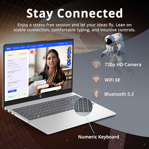HP Portátil con pantalla táctil HD de 15.6″, Intel i3-1215U, 8 GB de RAM, SSD PCIe de 256 GB, gráficos Intel UHD, Num Pad, cámara web HD, carga rápida, Win 11, plata, tarjeta USB Hotface de 128 GB