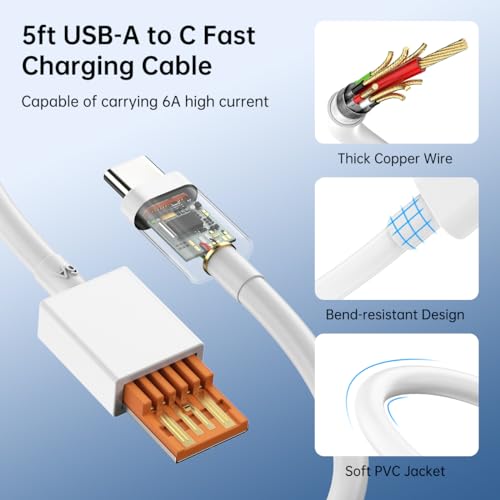 Cable de carga súper de 5 pies de largo: este cable está equipado con un chip de reconocimiento de protocolo de carga rápida Xiaomi que reconoce con precisión todos los modelos de teléfonos Xiaomi. El puerto USB-A cuenta con un diseño de 5 pines que activa la carga rápida de Xiaomi y transporta una alta corriente de 6 A. Al mismo tiempo, este cable también se puede utilizar para carga rápida de teléfonos oneplus, OPPO y realme.