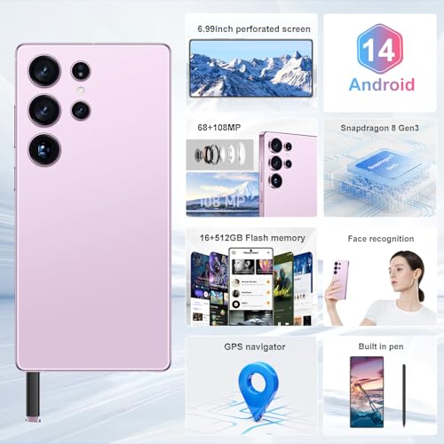 【6.99 HD + Android 14.zero】 Este es un teléfono celular Android con una pantalla grande, pantalla HD de 6.99 pulgadas + pantalla 1440 x 3040. Este teléfono Android 14.0 I25 Extremely desbloqueado está equipado con una cámara primary de 108 MP y una cámara frontal de 68 MP, registra mejor una vida hermosa y muestra tu belleza. Y tiene reconocimiento facial y desbloqueo de botón de huellas dactilares y botón rápido para tomar fotos, lo que protege eficazmente tu privacidad.